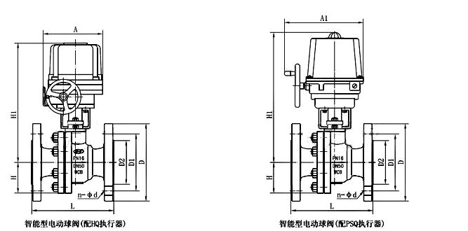 電動(dòng)帶手輪球閥主要外形及連接尺寸